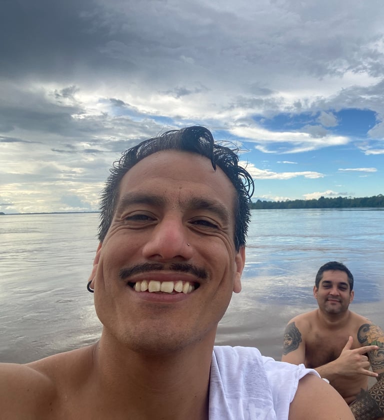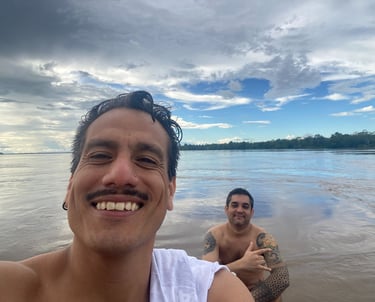 Our story together is recent, yet profound. A brother-like friend of mine was turning 40. As we talked about how quickly time passes and how we've known each other for about 32 years, he had a brilliant idea: for us to go to the jungle together to experience Ayahuasca. This would be my first time; he had already experienced it more than once. I traveled to Peru for this purpose and to visit my family, and when the day came, we ventured deep into the jungle. That is how I met Jorge, the cheerful and energetic guide who showed us the way to his village and our entry into the powerful Amazon.